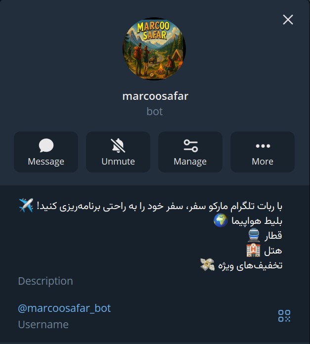 ربات تلگرام مارکو سفر با هدف ایجاد یک مرجع جامع برای علاقهمندان به سفر و طبیعتگردی طراحی و راهاندازی شد. در این ربات، تمامی گروهها و جامعههای فعال حوزه گردشگری و فعالیتهای فضای باز بهصورت دستهبندیشده معرفی شدهاند تا کاربران بتوانند بهسادگی مسیر مورد علاقه خود را پیدا کنند.